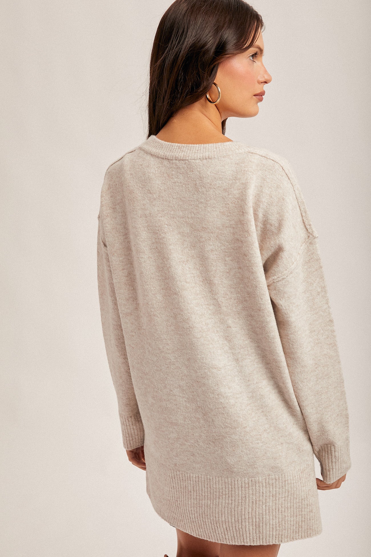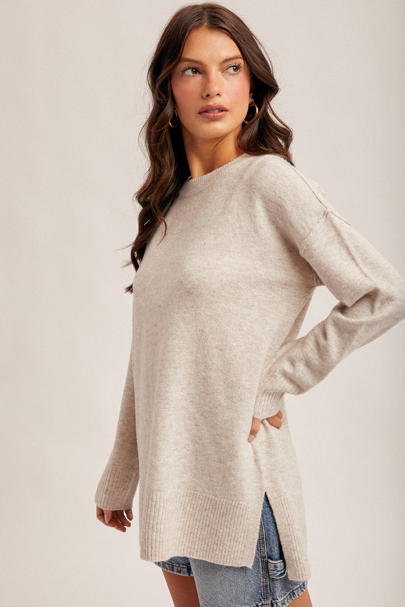 CREW NECK OVERSIZED EVERYDAY TUNIC SWEATER SIDE SLIT