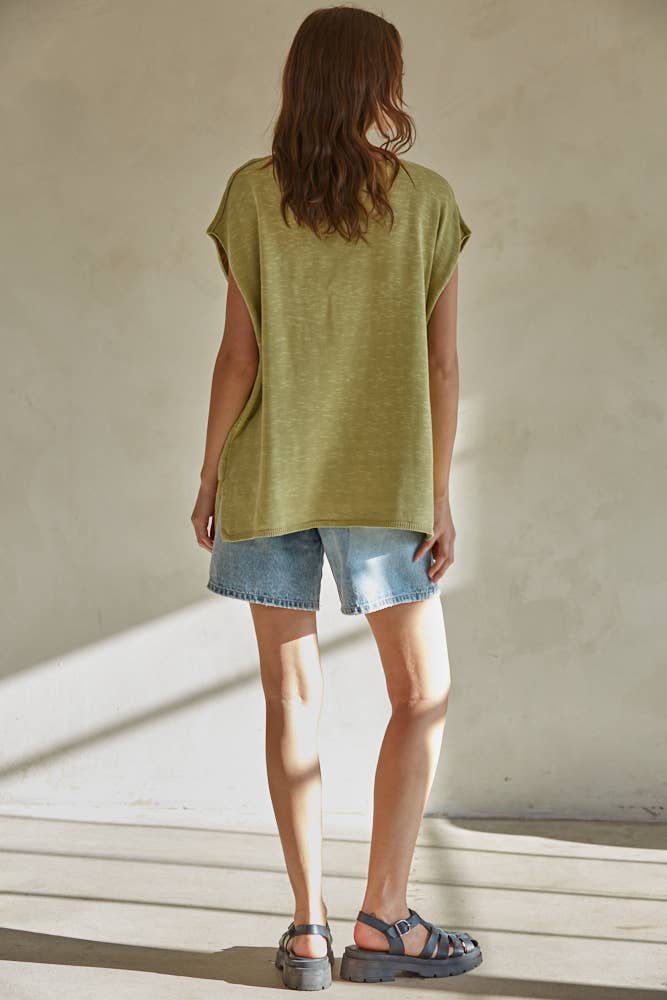 Knit Sweater Cotton Viscose V-Neck Sleeveless Top With Side Slits
